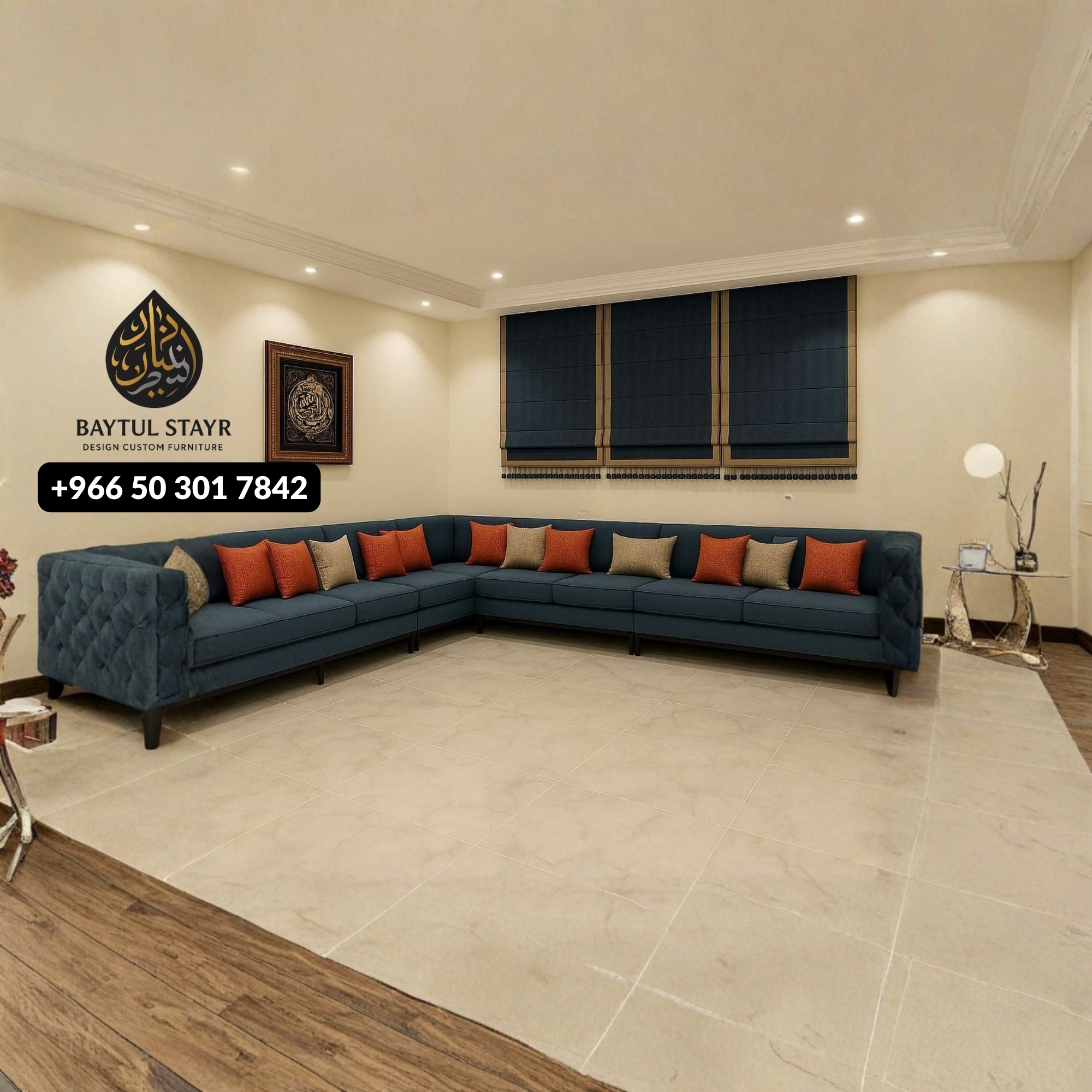 Discover comfort and elegance with this blue round sectional sofa, ideal for majlis or large living rooms. It features premium fabric, cozy cushions, and a spacious curved design—crafted specifically for Saudi homes.