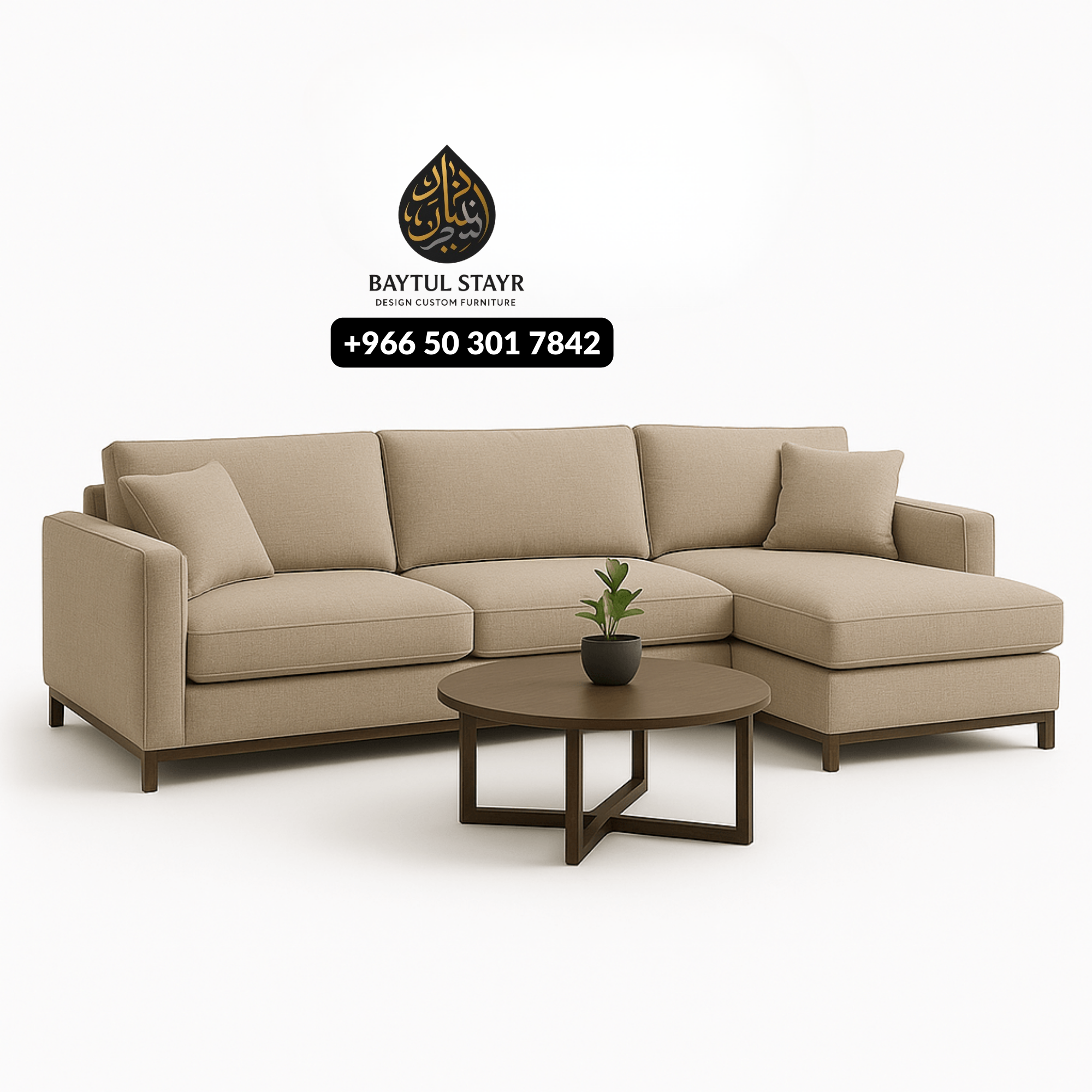 Give your living room a premium touch with this Modern Beige L-Shape Sofa paired with a matching WiFi Curtain, perfect for luxury homes in Riyadh. Designed for both comfort and elegance, this full set includes a spacious L-shape sofa, a stylish single seater, a cozy pouf, and a minimalist coffee table. The color-matching WiFi Curtain adds a sleek and smart aesthetic to your space, ideal for modern Saudi-style interiors.